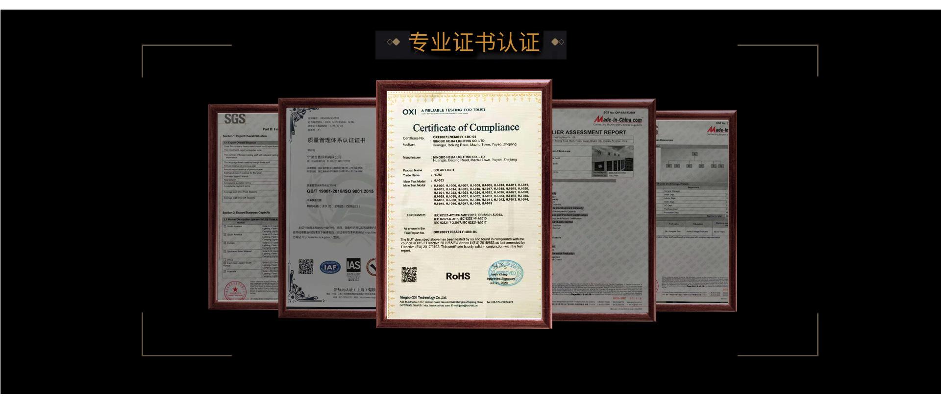 A empresa passou pela inspeção de fábrica BSCI/SGS/ISO9001 e os produtos têm certificados CE/ROHS.