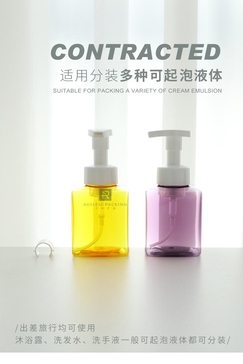 Garrafa de espuma de limpeza PET 200ml com tampa plana quadrada curva garrafa de espuma frasco de desinfetante para as mãos cosméticos sub-frasco