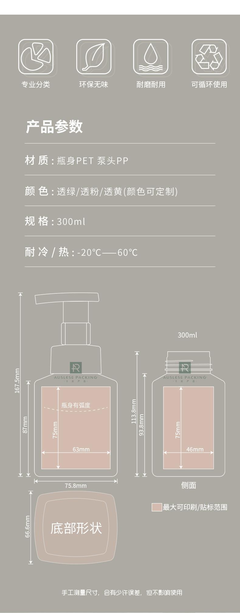 Garrafa de espuma PETG, limpador facial, sabonete para as mãos