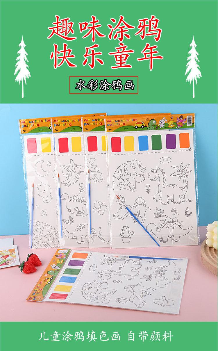 Junchuang papel para pintura de acuarela para niños graffiti viene con pintura de acuarela para rellenar jardín de infantes bebé pintado a mano DIY