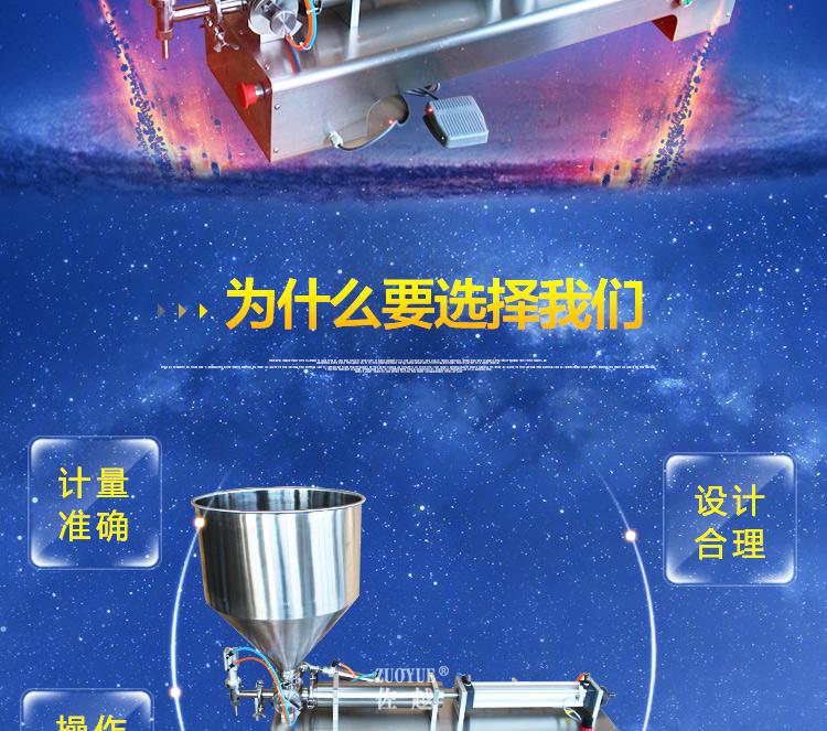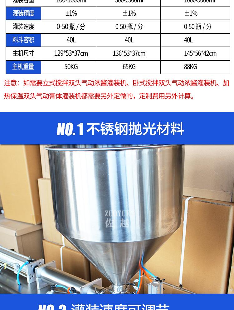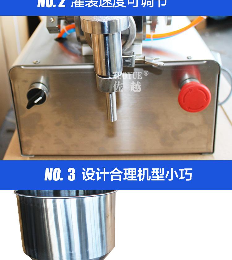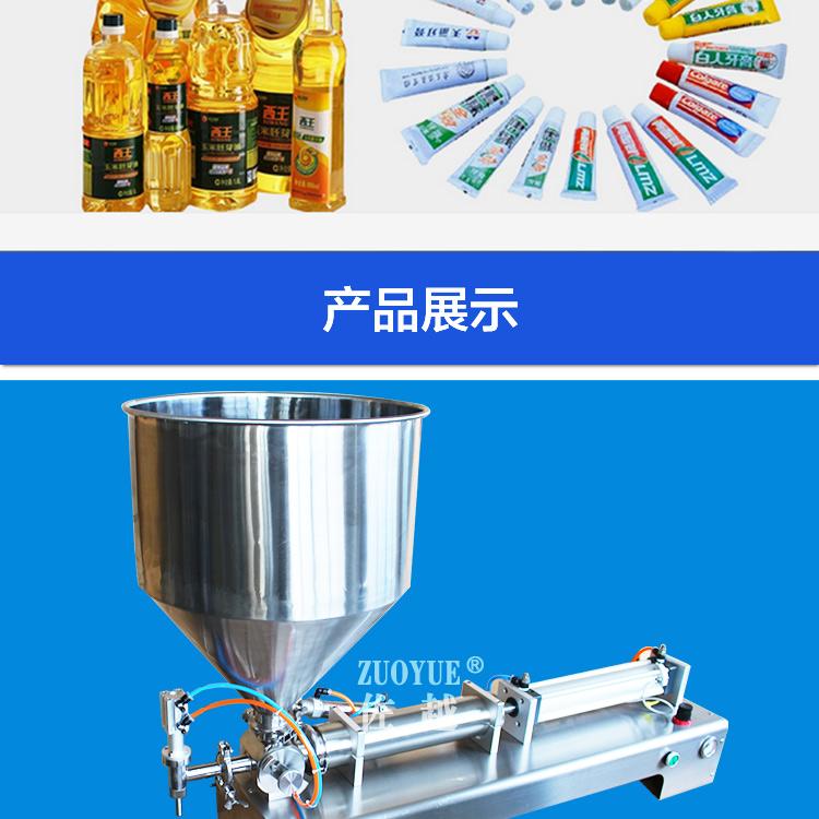Modelo: Máquina de enchimento de dupla finalidade elétrica vertical RGJ para pasta e líquido. O cilindro, o alojamento e o funil são todos feitos de aço inoxidável, e o pistão é feito de politetrafluoroetileno, que atende aos requisitos GMP. Esta máquina é um equipamento de enchimento de dupla finalidade para líquidos, pastas e molhos com partículas nas indústrias farmacêutica, química diária, alimentícia e de processamento. Seu volume de enchimento é ajustável, a ação é confiável e a medição é precisa. O volume de enchimento e a velocidade de enchimento podem ser ajustados, com pedal e função de enchimento automático, estrutura simples e operação conveniente. É adequado para encher líquidos, pastas e outras substâncias nas indústrias química, alimentícia, química diária, farmacêutica, pesticida, lubrificante e outras.