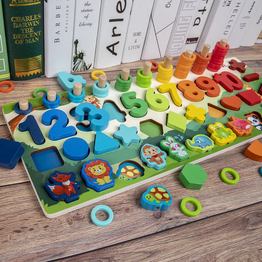 Madeira importada faia educação infantil inteligência infantil treinamento sensorial quebra-cabeça família versão soquete cilíndrico brinquedo vendas diretas