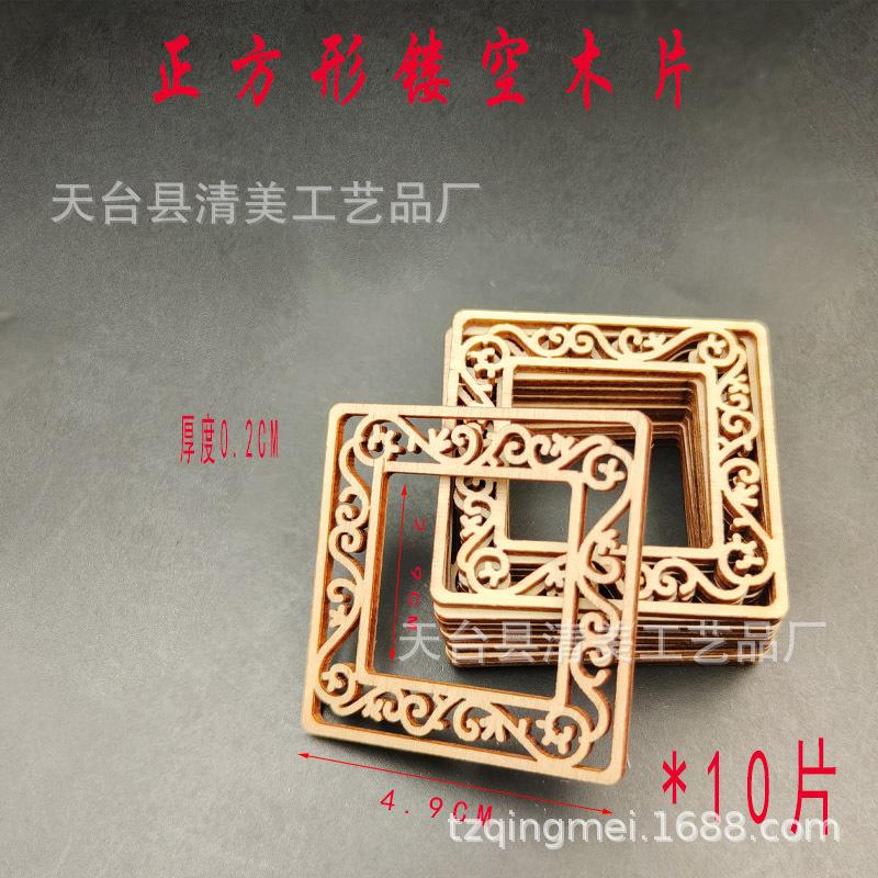 Nome do produto: Lascas de madeira ocas quadradas 4,9*4,9 cm, 10 peças por pacote, peso: cerca de 25 gramas