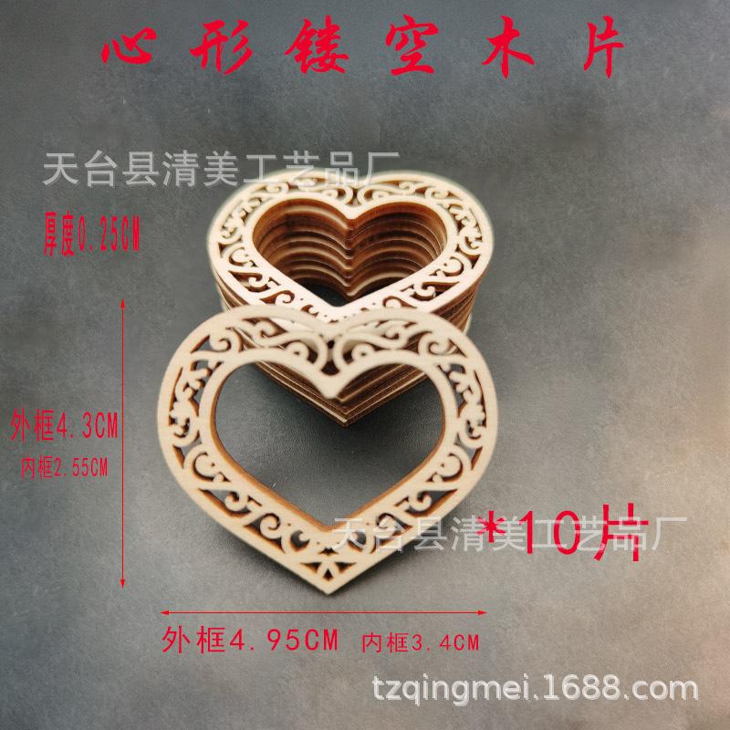 Nome do produto: Fatias de madeira ocas em forma de coração 4,95*4,3 cm, 10 peças por pacote, peso: cerca de 25 gramas