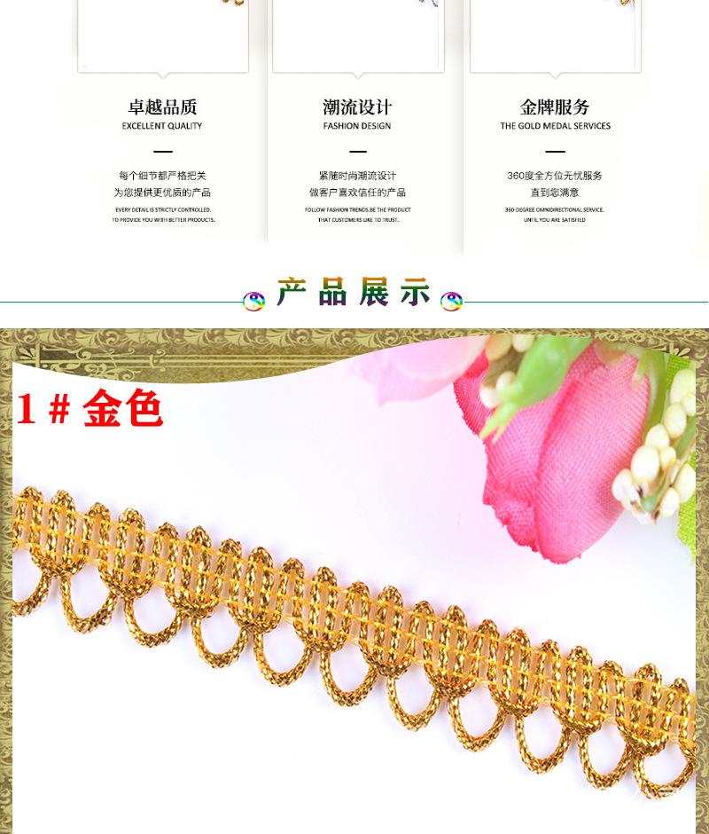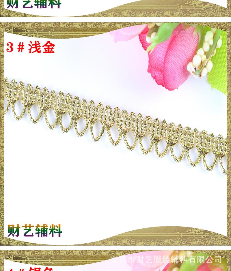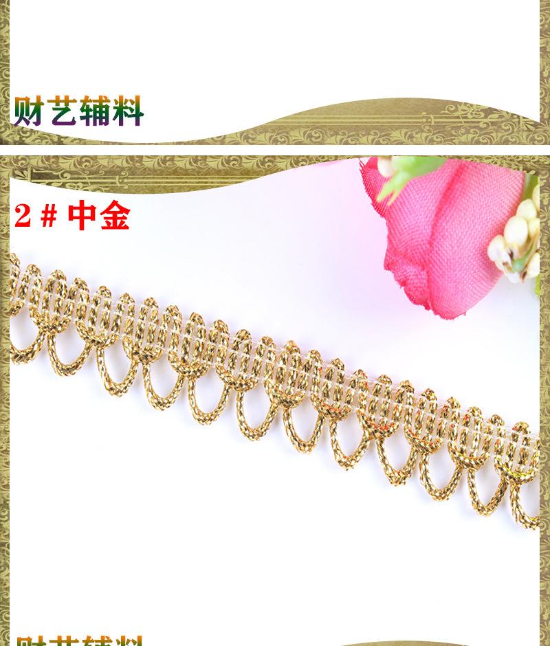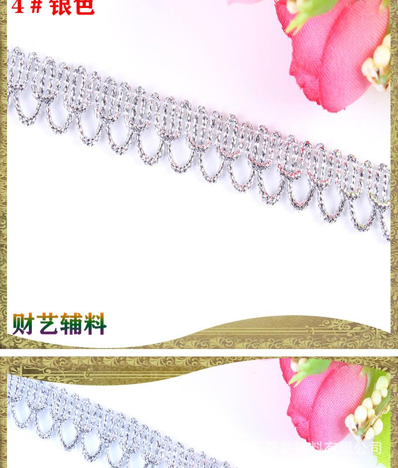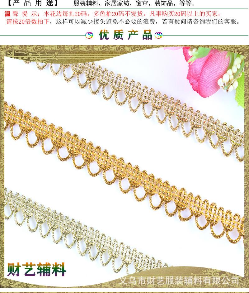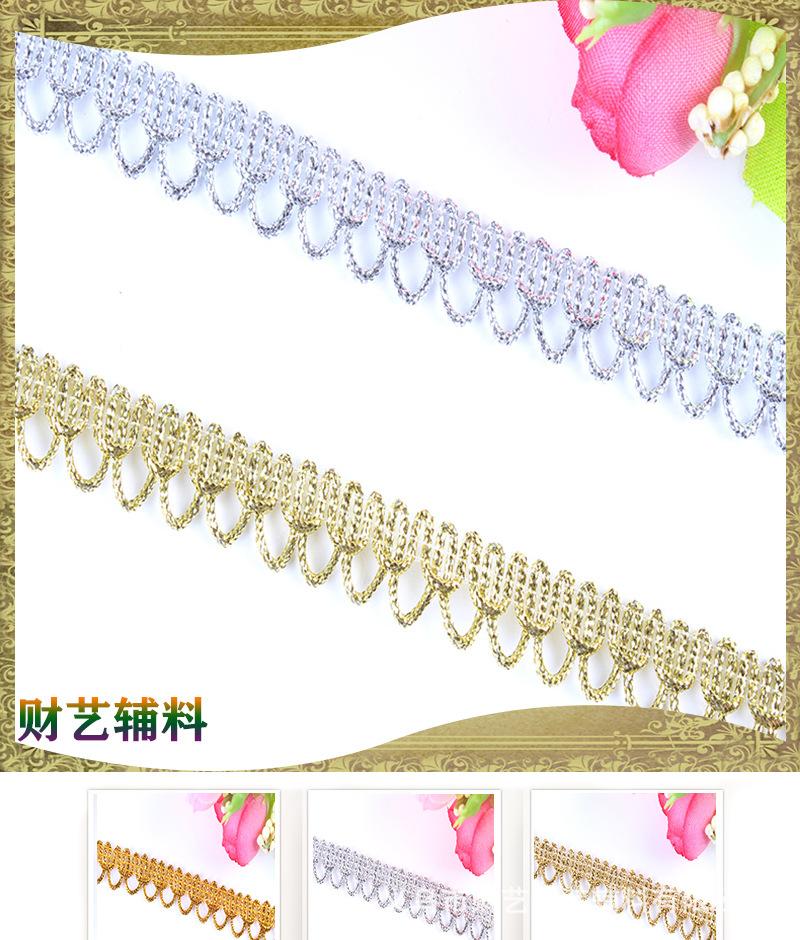 Yiwu renda ouro e prata enrolado núcleo linha renda 1,1 cm pequena e média curva onda renda acessórios para roupas renda dourada