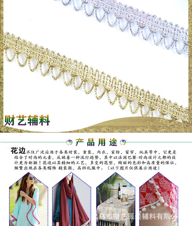 Yiwu atacado de rendas várias cortinas de renda dourada e prateada acessórios para roupas renda dourada renda ondulada