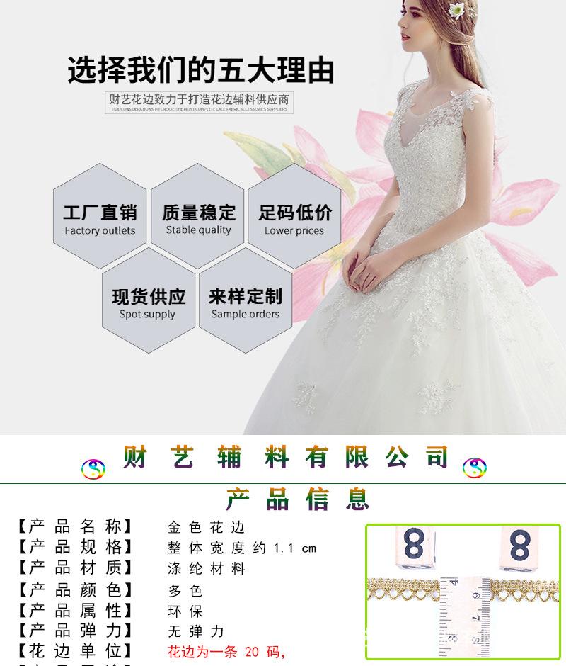 Atacado spot vestido de noiva de renda dupla colorida feminino étnico dourado acessórios para roupas renda ondulada