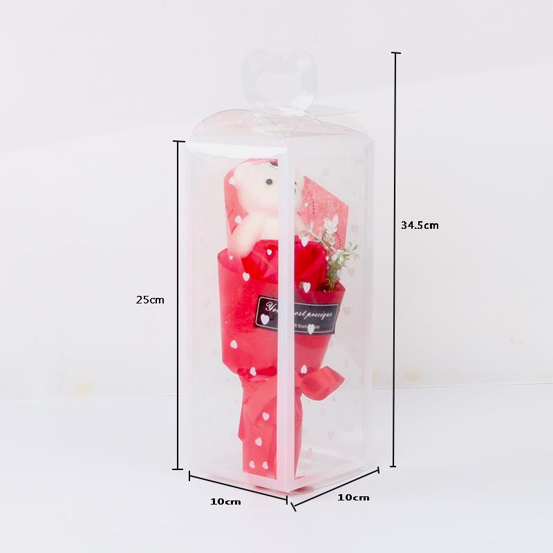 O comprimento total da embalagem externa é de cerca de 30-33 cm, o diâmetro da cabeça da flor é de cerca de 3,5 cm, o material é flor de sabão, as pétalas são grossas e cheias, a cor é brilhante, a embalagem é mais requintada e há um laço de diamante nela