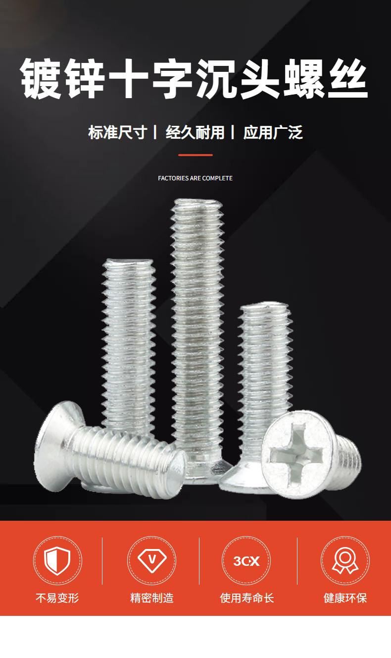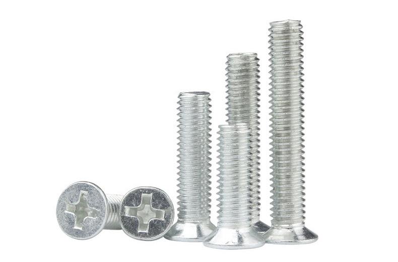 Parafusos de máquina escareados com rebaixo em cruz galvanizados em ferro, parafusos de aterramento de cabeça chata, parafusos de soquete de aterramento