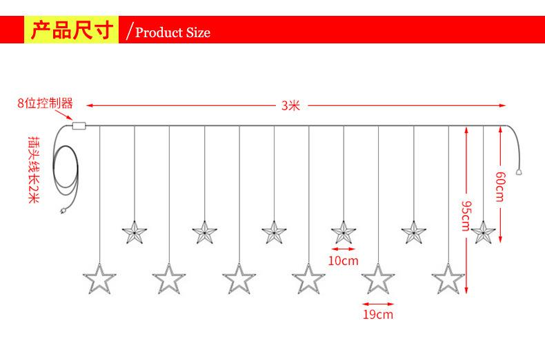 Especificações: Um conjunto de 12 luzes de estrelas (6 estrelas grandes + 6 estrelas pequenas)