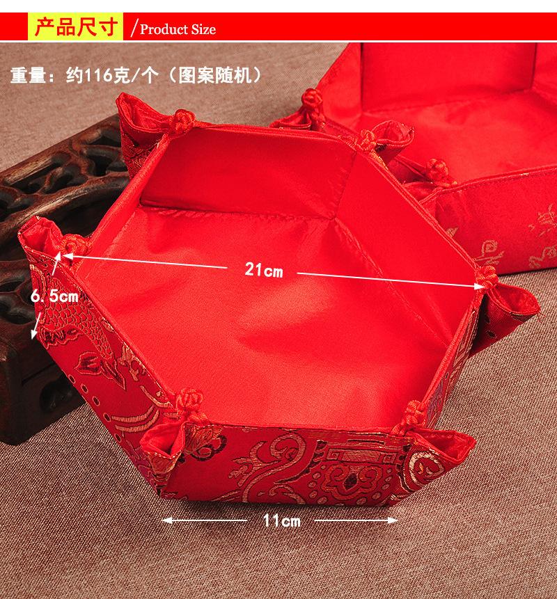 Descripción del producto: Hay muchos patrones de telas, y los patrones se envían al azar. Entrega plana. Después de recibir los productos, solo abrocha las esquinas y será un hermoso frutero de brocado chino~