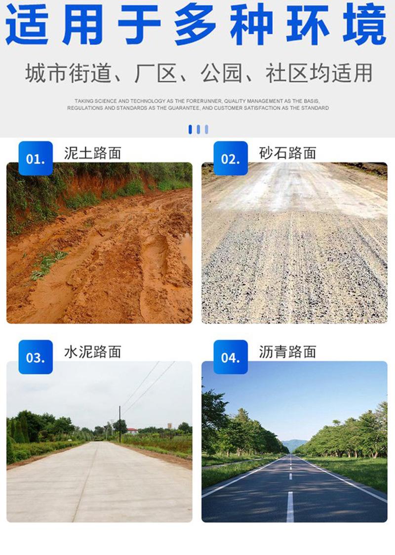 2. Remoção de poeira. A superfície da estrada é empoeirada, e a rega pode umedecer a poeira, efetivamente impedindo que ela voe, reduzindo assim a poluição do ar.