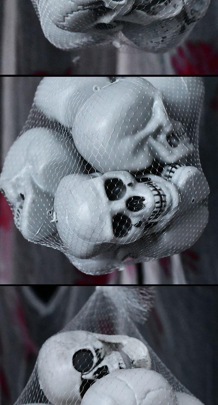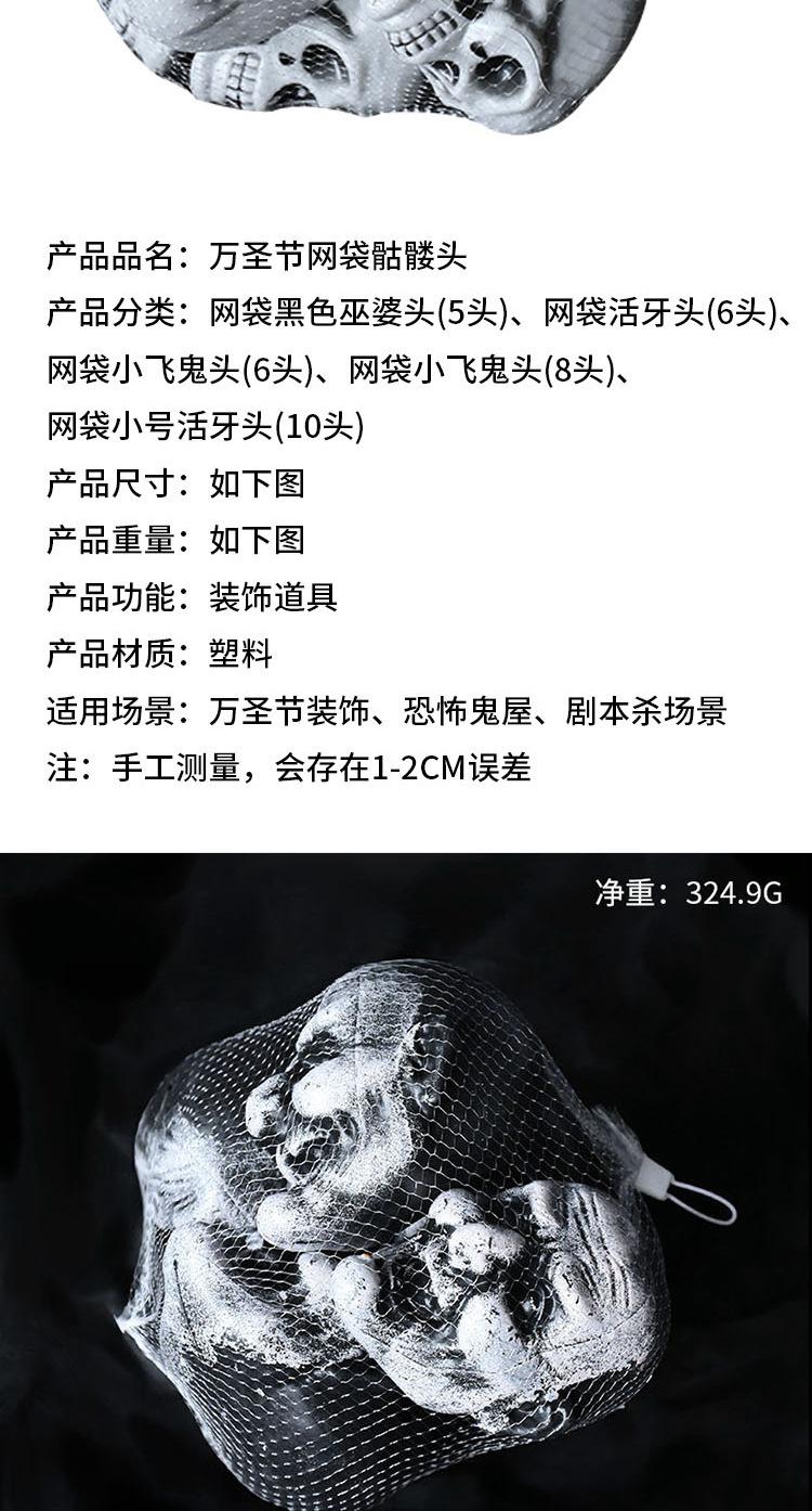 Bolsa de red con forma de calavera fantasma. Tamaño del producto: 7,5 x 8 x 10 cm.