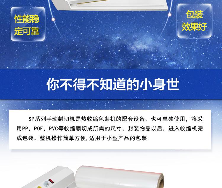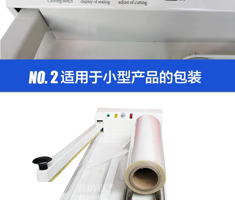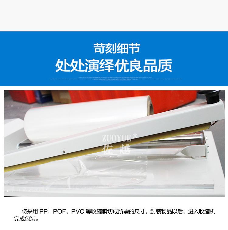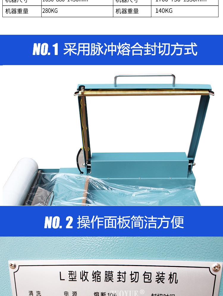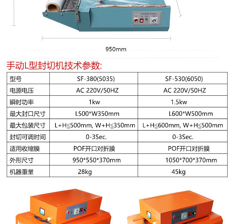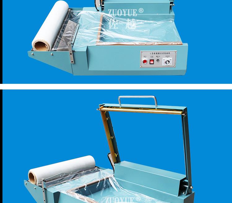 Máquina de selagem e corte semiautomática/manual/pneumática em forma de L de plataforma alta, a máquina adota faca de selagem de liga antiaderente e resistente ao calor, que não quebra a linha, e a selagem não será carbonizada ou defumada. A correia da faca de selagem é protegida automaticamente para evitar efetivamente o corte errado da embalagem e garantir a segurança do operador. O suporte de filme deslizante pode colocar filmes de várias especificações, e a manivela manual é conveniente para ajustar a altura da correia transportadora. A faca de selagem e corte semiautomática/manual/pneumática em forma de L é geralmente usada como um equipamento de suporte para máquinas de embalagem retrátil, e também pode ser usada sozinha; a faca de selagem e corte semiautomática/manual/pneumática em forma de L pode selar e cortar PE, PP, POF, PVC e outras embalagens de filme retrátil de uma só vez, e o pano de selagem revestido com camada antiaderente de Teflon não grudará no filme durante a selagem e o corte, e a selagem será limpa e não rachada. Após a selagem e o corte, o produto entra na máquina de encolhimento para completar a embalagem.