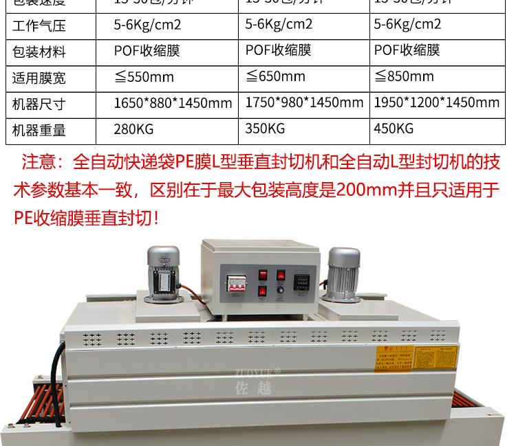 euA faca de selagem e corte é geralmente usada como equipamento de suporte para máquinas de embalagem retrátil, mas também pode ser usada sozinha;euA faca de selagem e corte pode selar e cortar a embalagem de filme retrátil em uma etapa. O pano de selagem revestido com camada antiaderente de Teflon não grudará no filme durante a selagem e o corte, e a selagem será limpa e não rachada. Após a selagem e o corte, o produto entra na máquina de embalagem termoencolhível para completar a embalagem. A máquina de embalagem termoencolhível adota tubo de armazenamento de calor de temperatura constante de quartzo cerâmico, controle eletrônico de temperatura automática de velocidade contínua,Controle de relé de estado sólido, estável e confiável, baixo ruído, longa vida útil. Os produtos embalados são selados, à prova de umidade e à prova de impacto, adequados para vários itens embalados firmemente e embalagens de paletes.PVC、PP、POF、C3、D995É adequado para uma variedade de filmes retráteis. Adota tecnologia avançada de transporte de ar retrátil, com ar quente uniforme e bom efeito de encolhimento. O motor de transporte é potente e pode funcionar continuamente por um longo tempo. A correia transportadora é resistente a altas temperaturas, desgaste e rasgos, e não queima o filme nem deforma.
