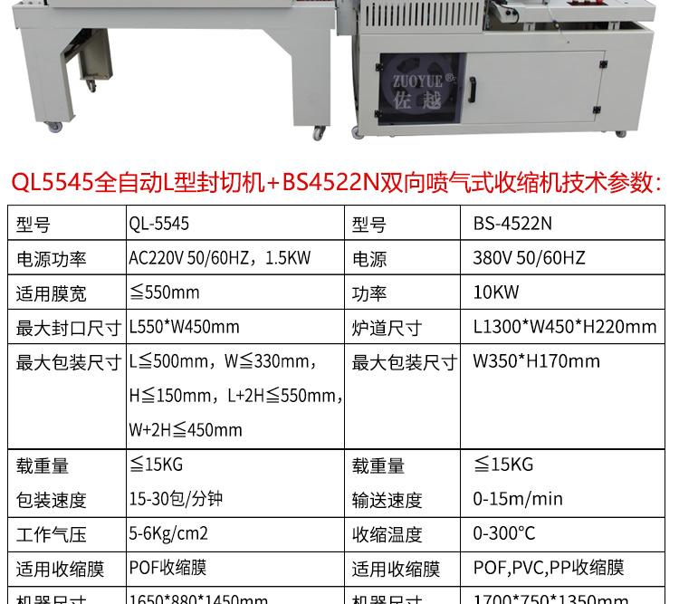 modelo:QL5545Plataforma de chão totalmente automáticaeuMáquina de embalagem para selar e cortar+BS-4525AMáquina de embalagem termoencolhível de chão, esta máquina é um modelo de operação totalmente automático e não tripulado, basta colocar o produto na correia transportadora de alimentação, por meio de sensoriamento fotoelétrico, conclui automaticamente o processo de transporte → selagem → transporte, também pode ser conectado à linha de produção da fábrica. Realize verdadeiramente a produção não tripulada, economize tempo e mão de obra, use filme termoencolhível (POF、PP、PVCO filme dobrável) dobra automaticamente itens individuais ou múltiploseuA máquina é totalmente fechada e cortada, e automaticamente encolhe a embalagem com calor. É amplamente usada em embalagens com encolhimento a quente de produtos farmacêuticos, alimentos, bebidas, artigos de papelaria, materiais impressos, cosméticos, produtos eletrônicos, brinquedos, produtos plásticos, autopeças, utensílios de mesa e outros produtos.