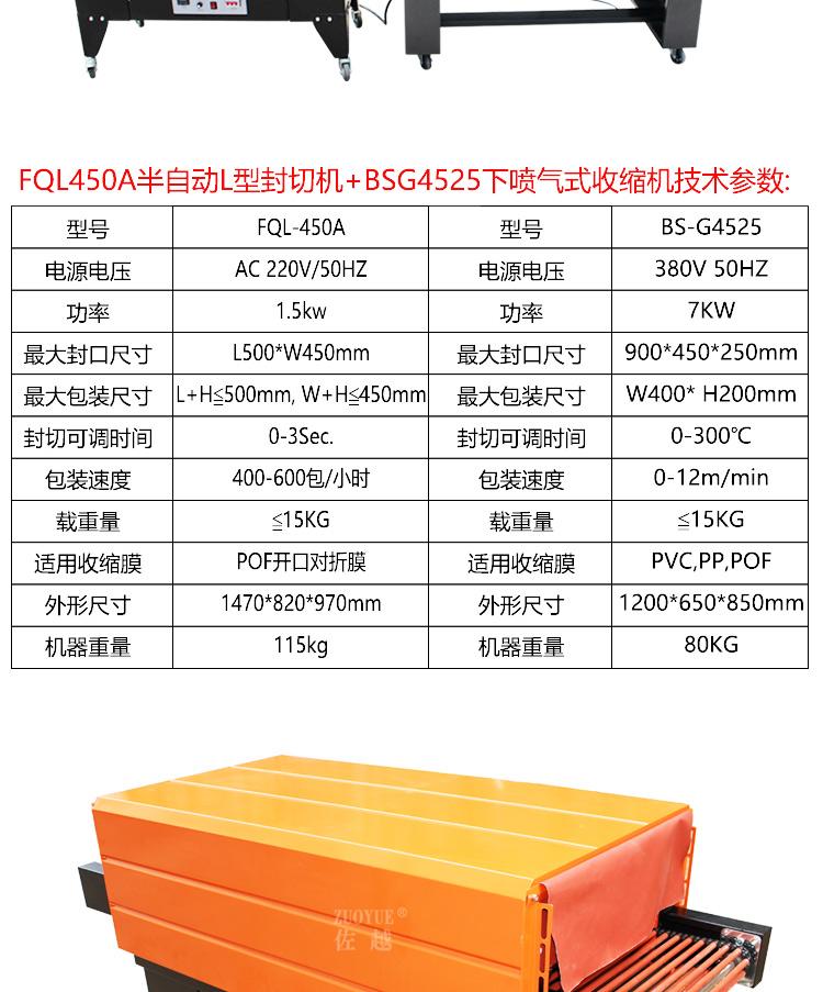 Modelo: FQL-450 Máquina de selagem e corte em forma de L semiautomática/manual/pneumática de plataforma alta+BS-4525AMáquina de embalagem termorretrátil