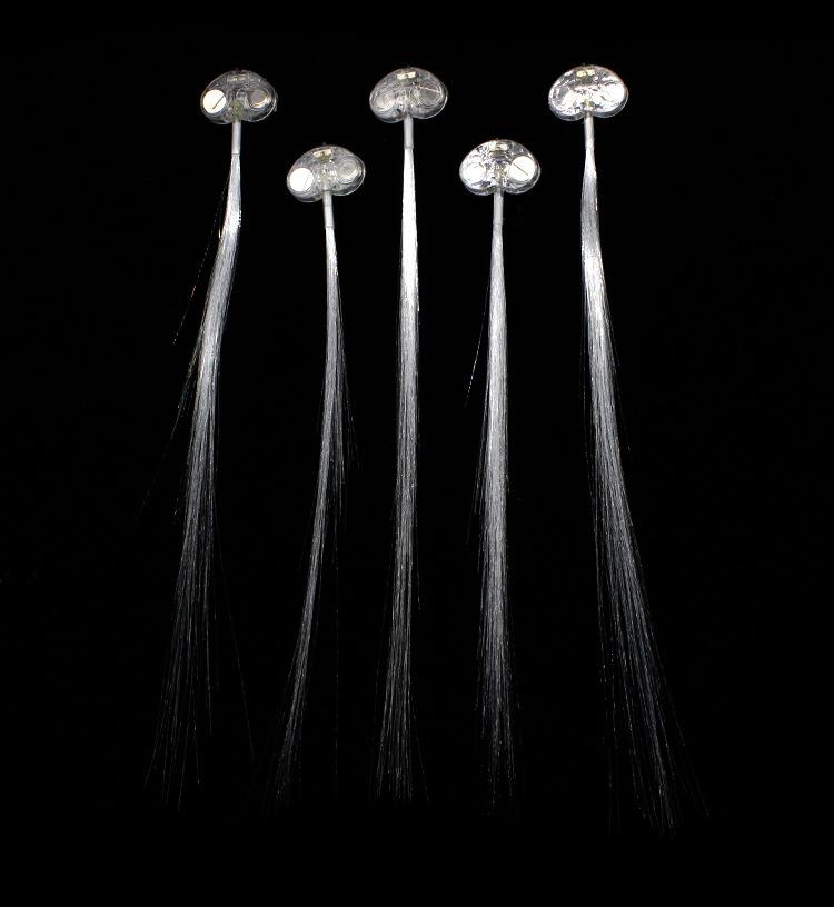 Adequado para danças, bares, discoteca, KTV, reuniões e atividades. Descrição do produto: Este produto é uma nova série de produtos luminosos. Há um grampo de cabelo no corpo luminoso que pode ser preso no cabelo, e a fibra óptica aparecerá como as estrelas na imagem. Definitivamente fará você se destacar à noite.