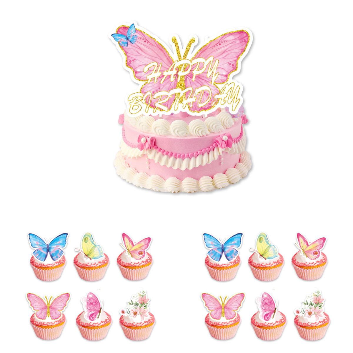Nombre del producto: Bandera para pastel con tema de mariposas