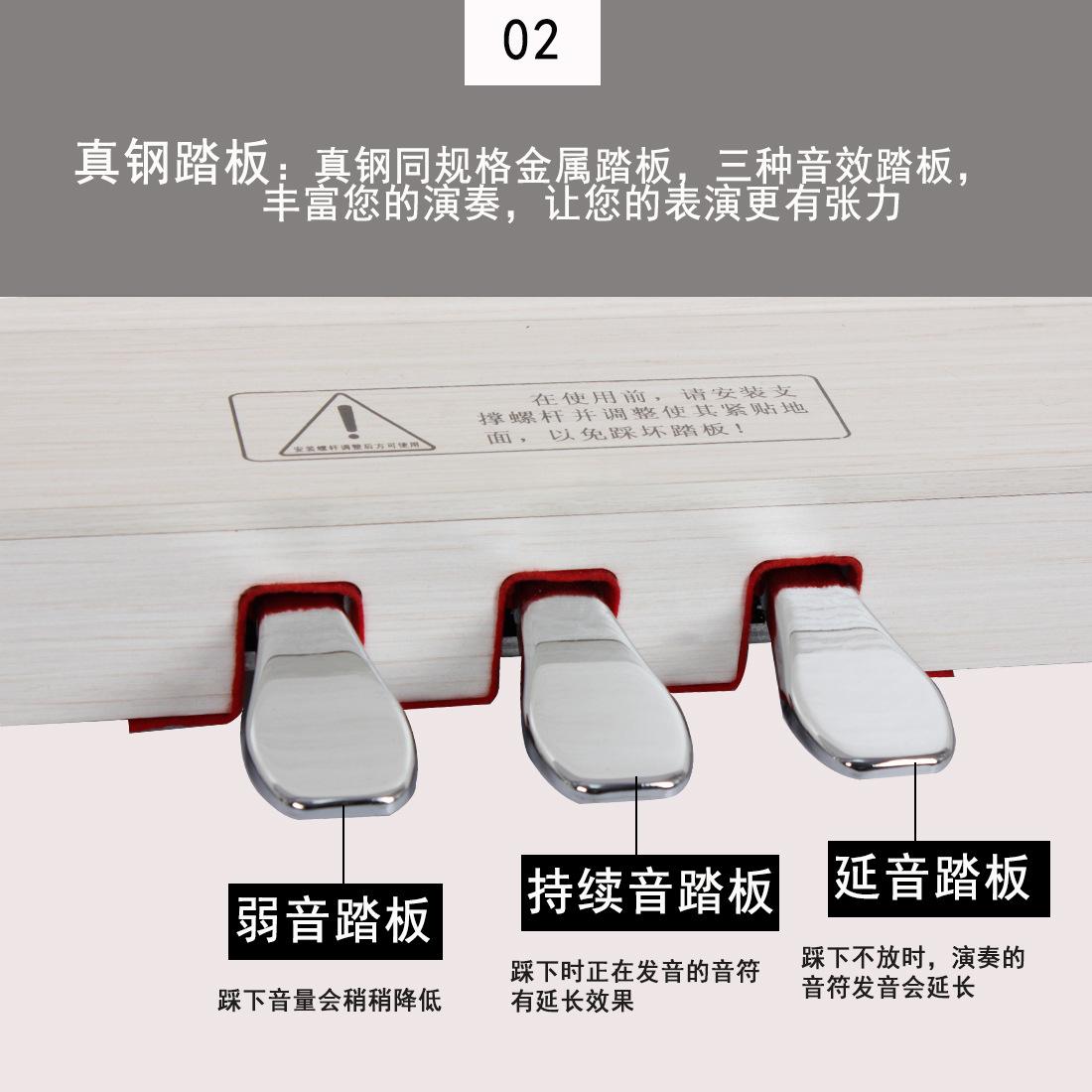 Ponto de venda: Imitação de marfim e ébano, resistência ao impacto, resistência ao calor, resistência a baixas temperaturas, resistência química; use pedal de aço real, três pedais de som para enriquecer seu desempenho; painel de operação multifuncional, torna sua operação mais conveniente; alargamento O suporte para música tem design simples e é conveniente para retrair e armazenar. É conveniente colocar vários tamanhos de cores musicais. |