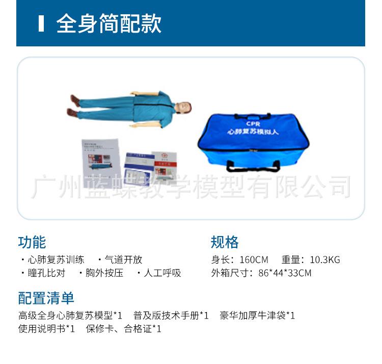O manequim simples de ressuscitação cardiopulmonar de corpo inteiro é usado para treinamento de habilidades de primeiros socorros médicos. É adequado para departamentos de bombeiros, hospitais, escolas de direção, escolas, resgate de minas, etc. É fácil de operar, barato e é uma escolha ideal para treinamento de primeiros socorros e popularização da ressuscitação cardiopulmonar.