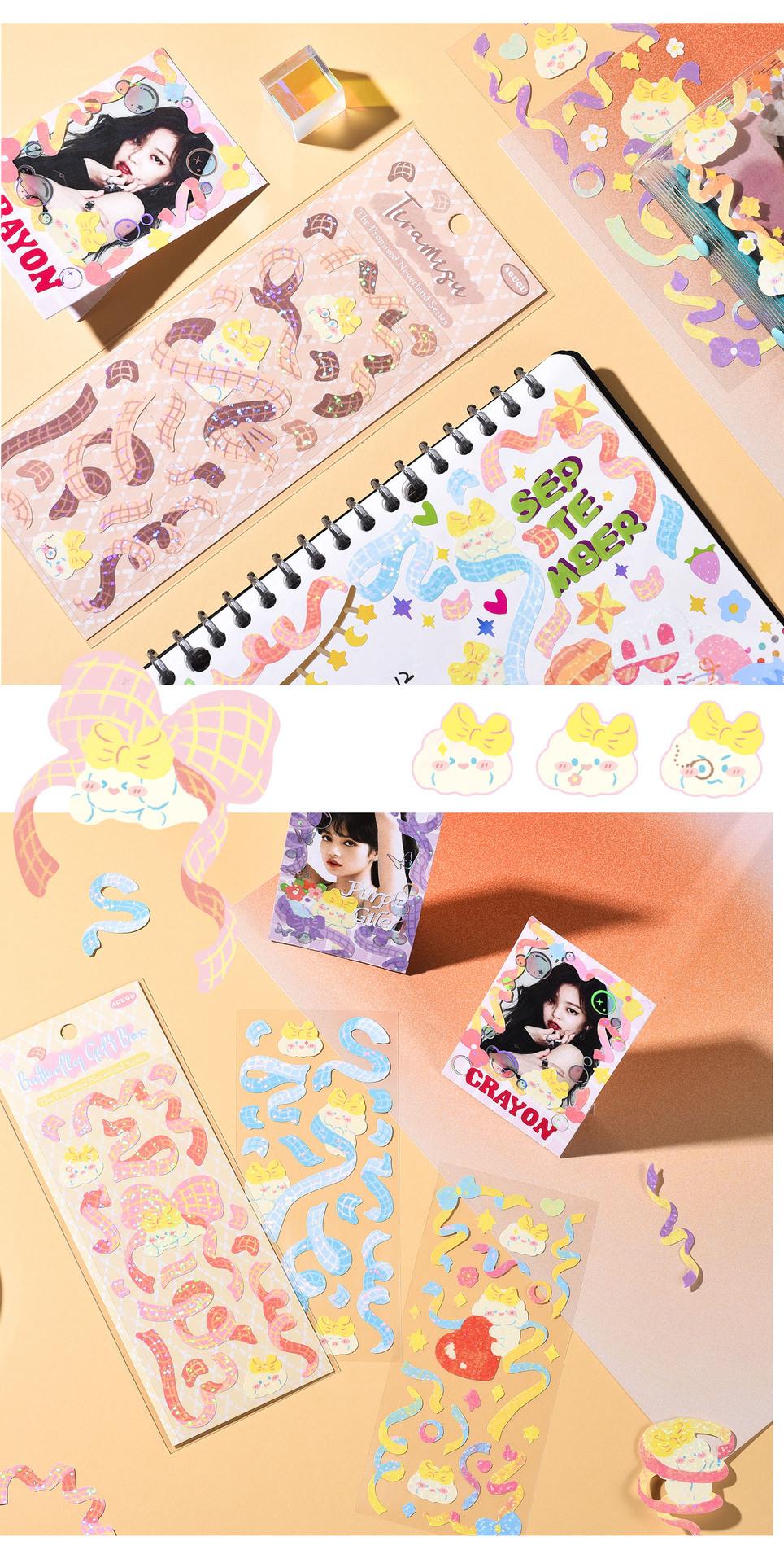 | AGUGU bonito coreano ins estilo piscando desenho animado manual cartão adesivos laser adesivos transparentes animais de estimação adesivos |