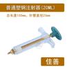 20MLSeringa de aço plástico comum: Comprimento total: 150 mm, diâmetro da seringa: 23 mm; aproximadamente 41 g/peça