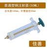 50MLSeringa de aço plástico comum: Comprimento total: 160 mm, diâmetro da seringa: 30 mm; aproximadamente 50 g/peça