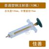 10MLSeringa de aço plástico comum: Comprimento total: 135 mm, diâmetro da seringa: 19 mm; aproximadamente 32 g/peça