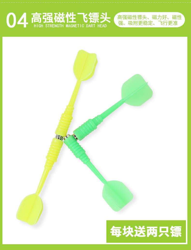 Descrição: Este frisbee é relativamente barato, mas tem bom magnetismo. Depois que você o joga no disco, ele não cai. Em um conjunto, há 2 dardos coloridos. Um alvo, depois que você o joga no alvo, ele gruda. Os dardos são cabeças planas magnéticas. Existem várias áreas coloridas impressas no alvo, e as pontuações são marcadas nele, o que é simples e fácil de entender. A cabeça é um ímã forte, não uma agulha, muito seguro.