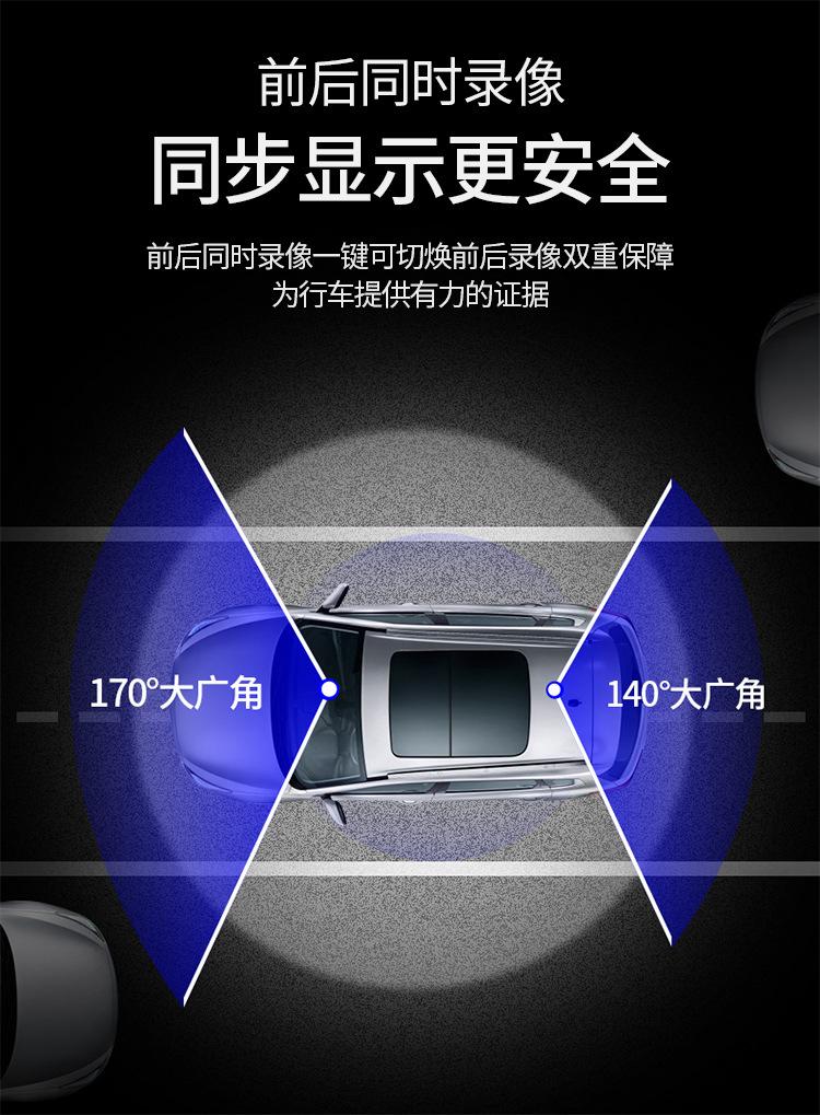 | Resolución de vídeo | 1080P | ángulo de la cámara | Delantero 170°, trasero 140° |