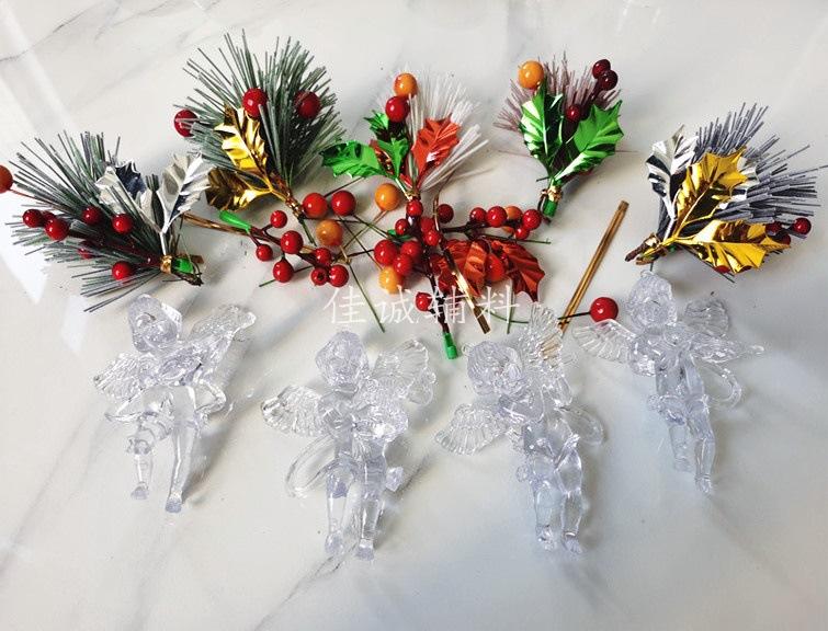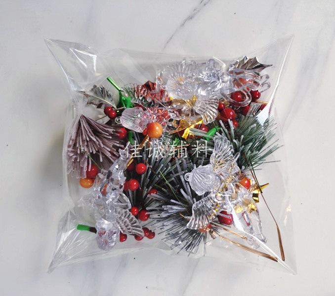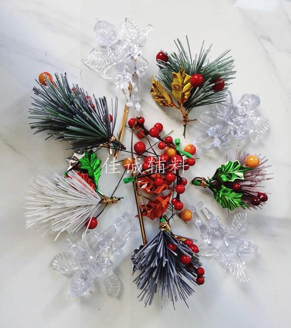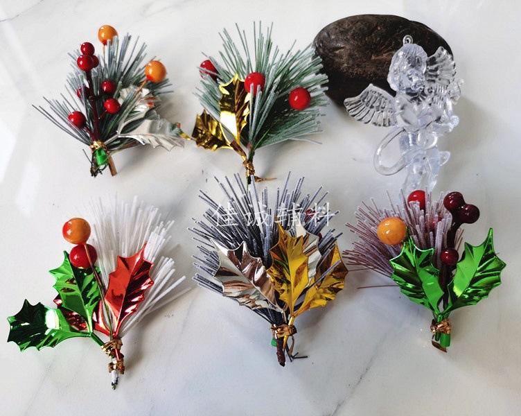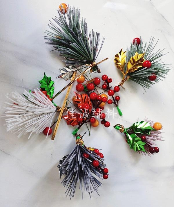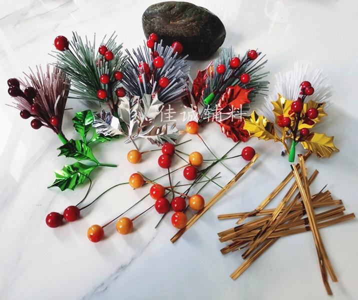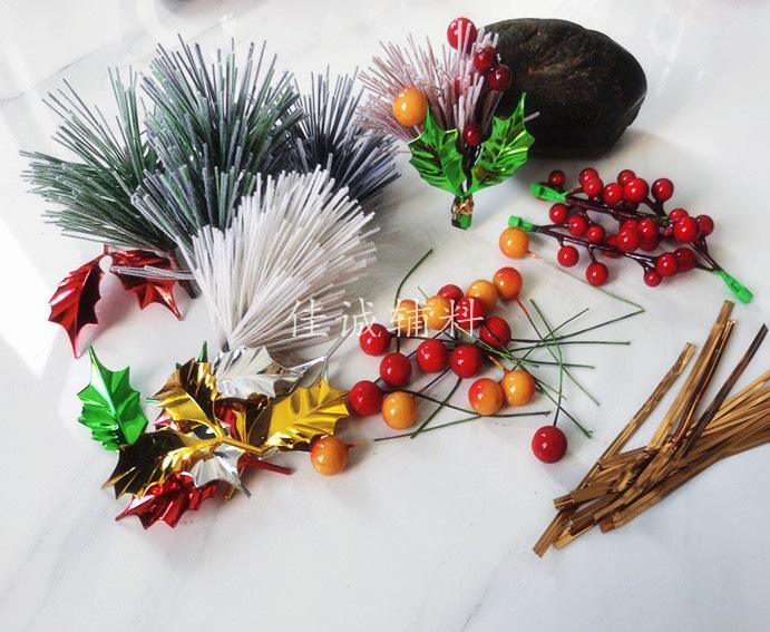 Pacote com 50 peças de pinho nodoso (5 pinhos nodosos + 5 galhos de sete ramos + 10 folhas + 10 frutas vermelhas/frutas de duas cores + 10 braçadeiras)