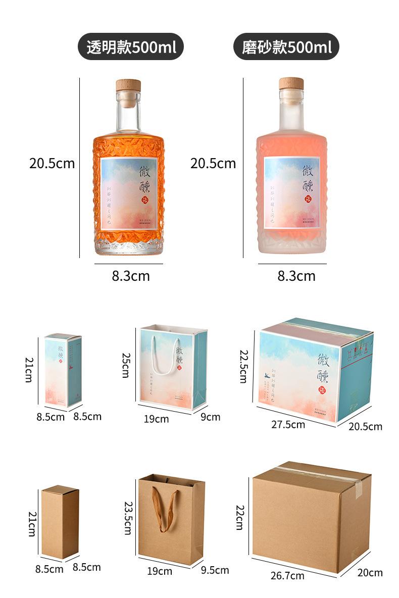 Botella de licor de vidrio de 500 ml botella de vino de frutas de una libra botella vacía juego completo embalaje DIY vino de ciruela vino de osmanthus fabricante de botellas de vino vacías venta al por mayor