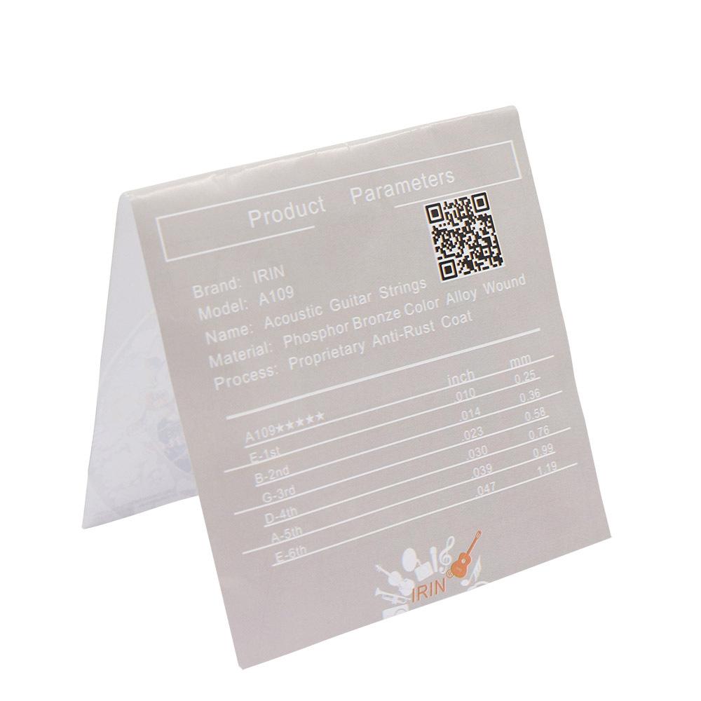 Ponto de venda: Feito de cordas de seda de aço inoxidável importadas, núcleo de aço de alta qualidade selecionado, feito por máquina de enrolamento totalmente automática, enrolamento de liga de cobre, processamento de tecnologia especial de revestimento de prata, as cordas são brilhantes e brancas, o tom é nítido, os sobretons são ricos e a qualidade da corda é estável e uniforme. As cordas banhadas a prata 012-053 são conhecidas como o modelo de corda padrão para violões folk |