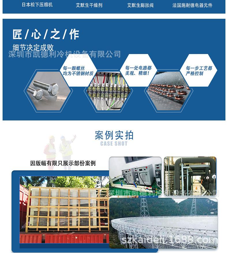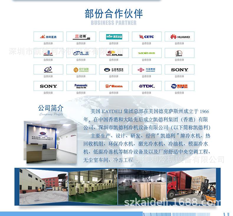 Shenzhen Kaideli Refrigeration Equipment Co., Ltd. es un fabricante profesional de enfriadores, enfriadores industriales, congeladores industriales, congeladores, enfriadores de baja temperatura. Congeladores de baja temperatura, unidades de refrigeración, enfriadores enfriados por agua, enfriadores de tornillo enfriados por agua, enfriadores de tornillo, enfriadores de caja enfriados por agua, enfriadores enfriados por aire, enfriadores de caja enfriados por aire, máquinas de agua helada y otros equipos de refrigeración. ¡Se pueden personalizar varios enfriadores grandes y pequeños para los clientes!