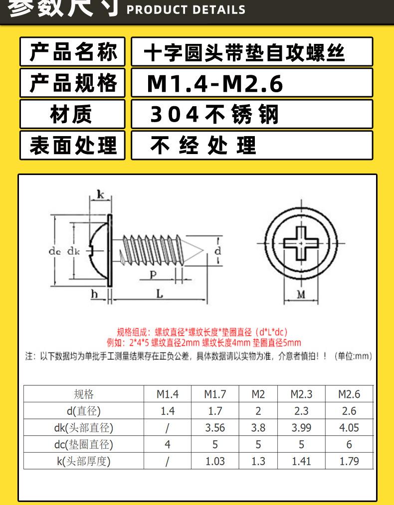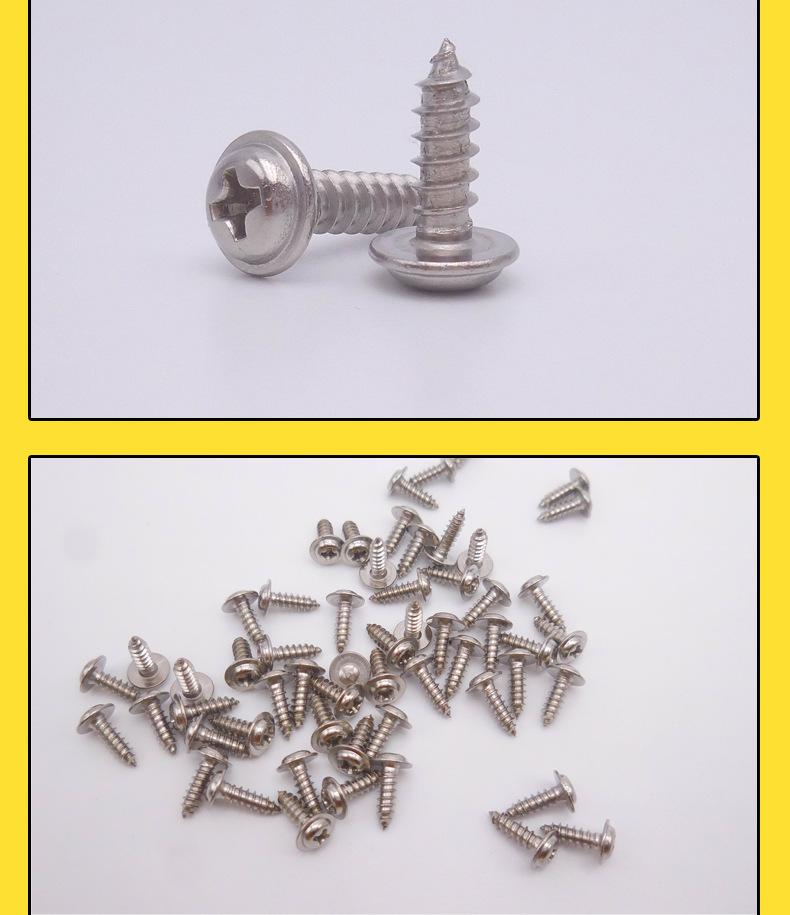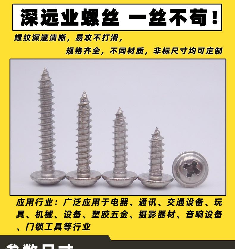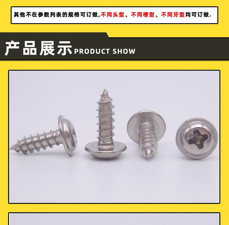 Venda direta da fábrica em aço inoxidável cabeça panela cruzada com arruela parafuso auto-roscante M4 com arruela parafuso de cabeça redonda com parafuso de cabeça redonda PWAParafuso de cabeça redonda PWA de aço inoxidável 304 com arruela auto-roscante 1,7X10-2,6X16