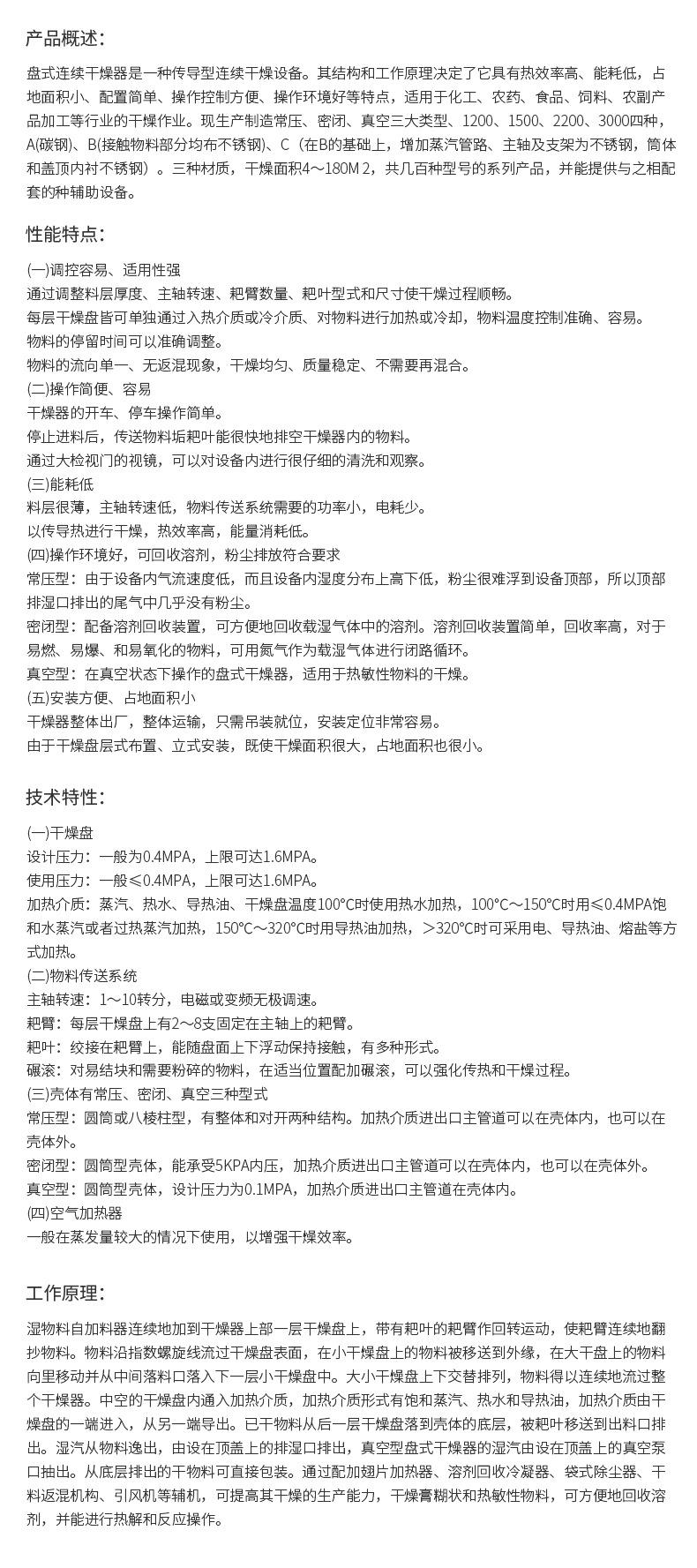 | Especificação | Diâmetro externo mm | Altura mm | Área de secagem m2 | Potência kW |