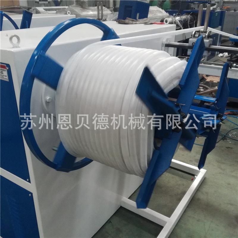 3. A linha de produção de tubos corrugados consiste em um alimentador a vácuo, um secador, uma extrusora, uma cabeça de matriz, um módulo de moldagem, uma máquina de moldagem e uma bobinadeira.