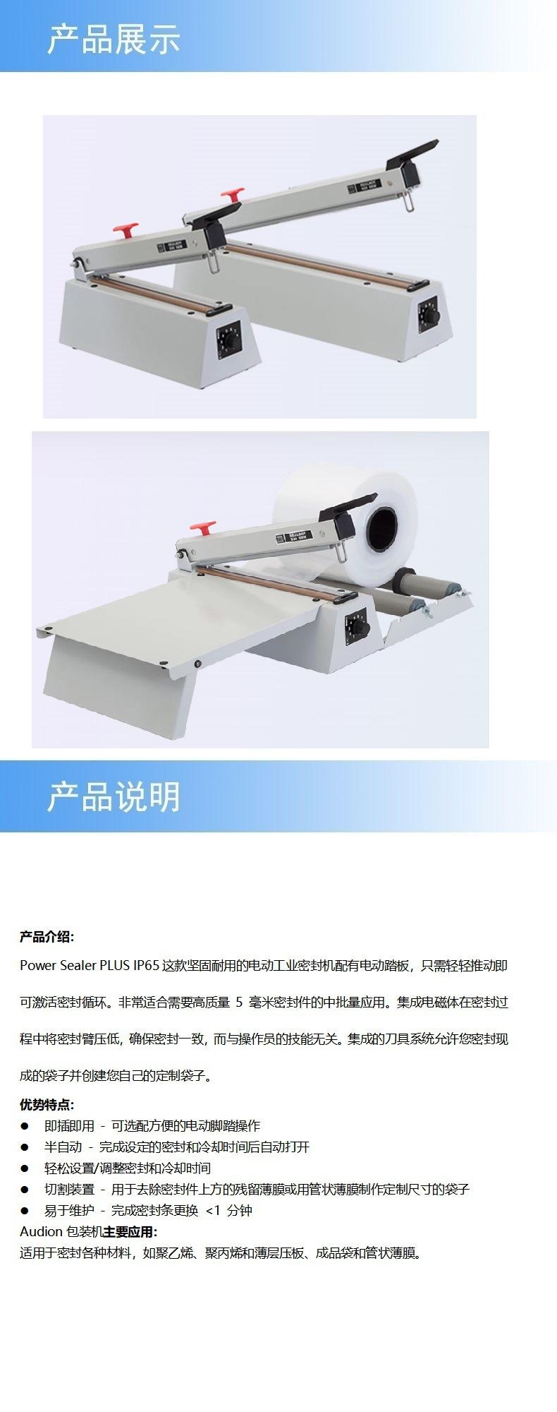 Power Sealer PLUS IP65 Este robusto selador industrial elétrico possui um pedal elétrico que ativa o ciclo de selagem com apenas um leve empurrão. Ideal para aplicações de médio volume onde uma vedação de 5 mm de alta qualidade é necessária. Um eletroímã integrado segura o braço de selagem para baixo durante o processo de selagem, garantindo uma vedação consistente independentemente da habilidade do operador. O sistema de faca integrado permite que você sele sacos prontos e crie seus próprios sacos personalizados.
