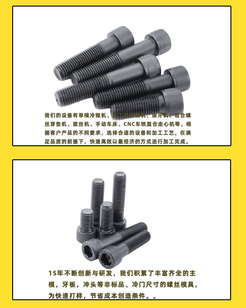 [Parafusos da Indústria Shenyuan] Somos uma empresa especializada na produção e venda de fixadores. Somos compostos por um grupo de técnicos e vendedores que atuam na produção e venda de fixadores há mais de 20 anos. Temos o compromisso de fornecer aos nossos clientes aço inoxidável 201, aço inoxidável 304, aço inoxidável 316, grau 12,9, grau 10,9, grau 8,8, grau 4,8, peças padrão de cobre e titânio e peças não padronizadas de alta qualidade. Enquanto melhoramos constantemente nossos produtos de aço inoxidável 304 e 316 de produção própria, continuamos a desenvolver e expandir outras categorias e a melhorar a cadeia de fornecimento de produtos.