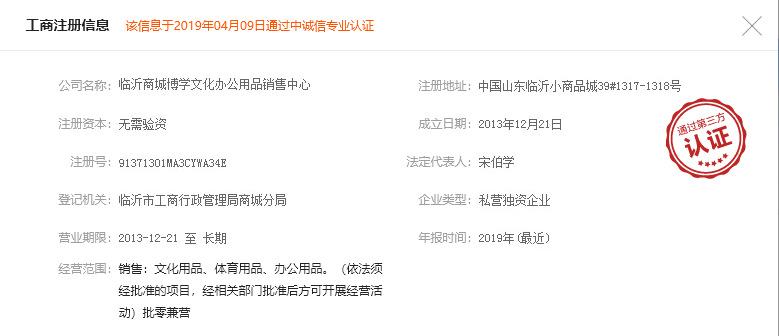 Nome da empresa: Boxue Cultural Supplies Sales Center