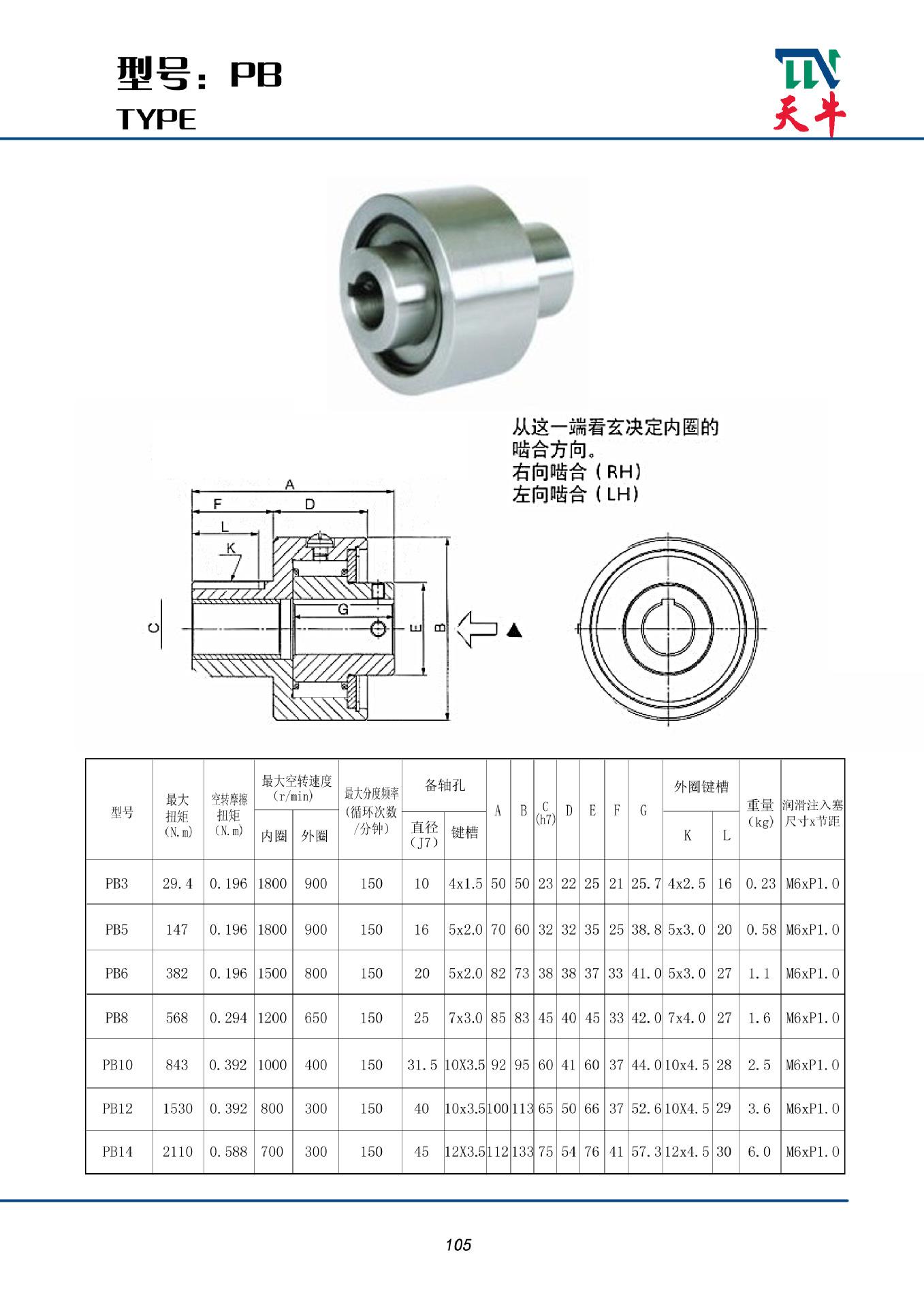 1. A coaxialidade do anel externo e do anel interno da embreagem de came da série PB é mantida por um rolamento deslizante entre o anel externo e o eixo. Este rolamento deslizante também pode suportar a carga radial atuando no anel externo.