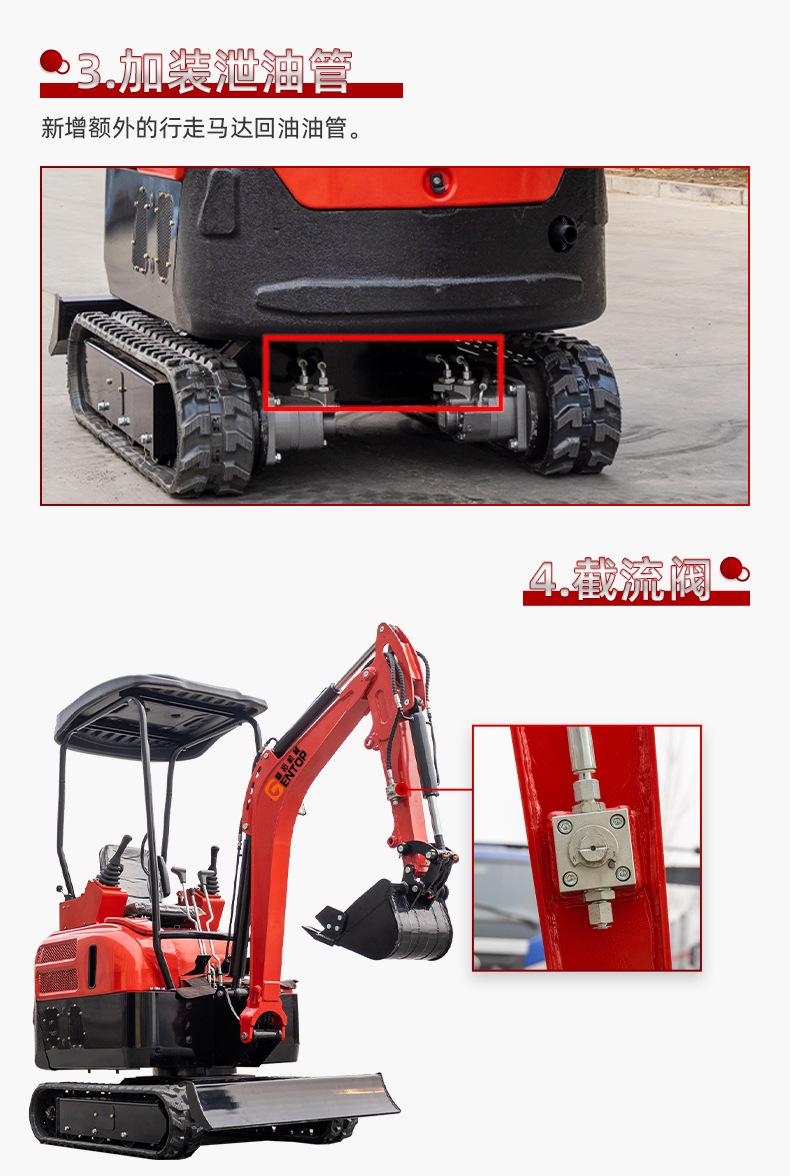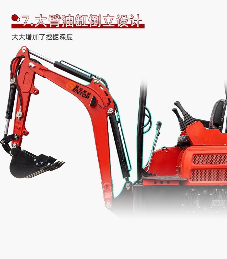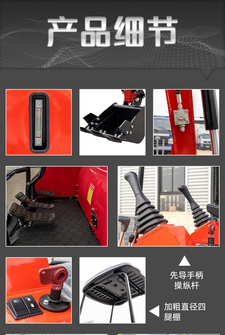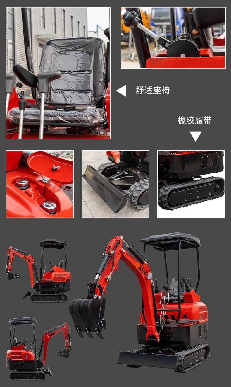 Escavadeira pequena de 2 toneladas, com motor de três cilindros refrigerado a água, operação piloto hidráulica, design invertido do cilindro da lança, abertura de valas e escavadeira, rompedor substituível, trado, escarificador, garra de madeira e outros acessórios,