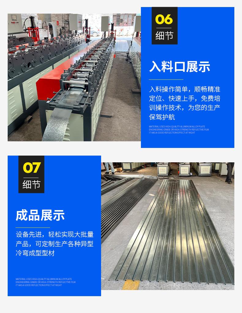 Os principais produtos da Foshan Texin Machinery Equipment Co., Ltd. são: equipamentos de conformação a frio de metal, equipamentos de estrutura de aço, máquinas para persianas, máquinas de aço em forma de C, Z, U, V, W, máquinas para telhas com fivela oculta, telhas de aço coloridas máquinas, máquinas para guarda-corpos rodoviários, máquinas para prateleiras, máquinas para painéis de transporte, máquinas para painéis de contêineres, máquinas para acessórios de geladeira, máquinas para quilhas, máquinas para decks de piso, máquinas para molduras de portas, máquinas anti-roubo para portas e janelas, máquinas caça-níqueis para estufas, máquinas para portas rolantes compostas europeias, máquinas de coluna de prateleira, máquinas de azulejos de aço colorido, máquinas de fivela de teto, máquinas de quilha de aço leve, máquinas de painel de telhado com fivela oculta, máquinas de decks de piso, máquinas de trilho guia de esfera, máquinas de tubos de formato especial, vários equipamentos de dobra a frio de chapa de metal de formato especial, etc.