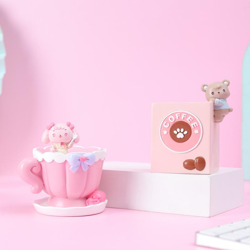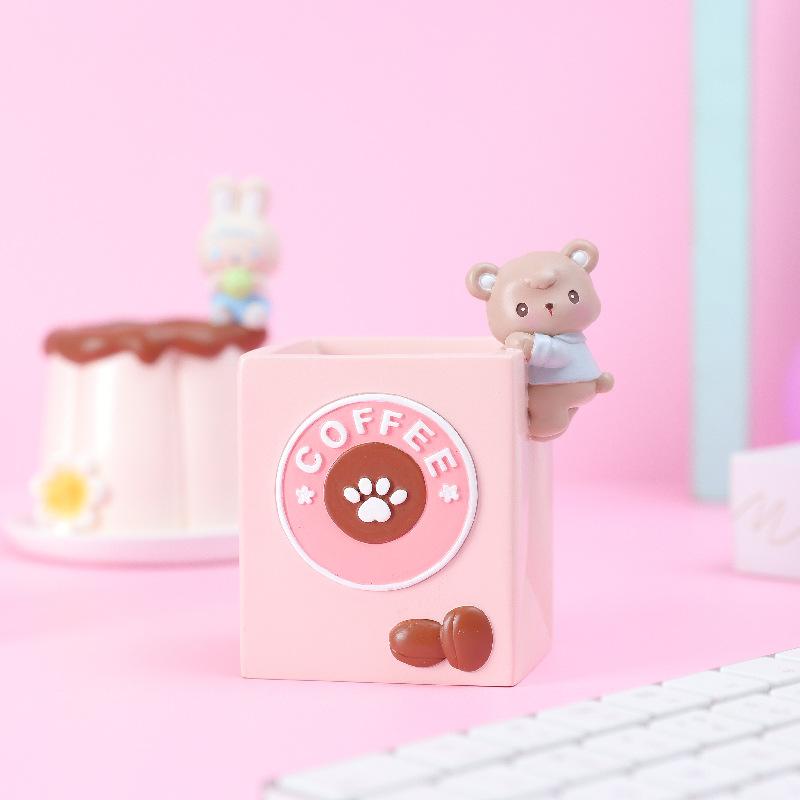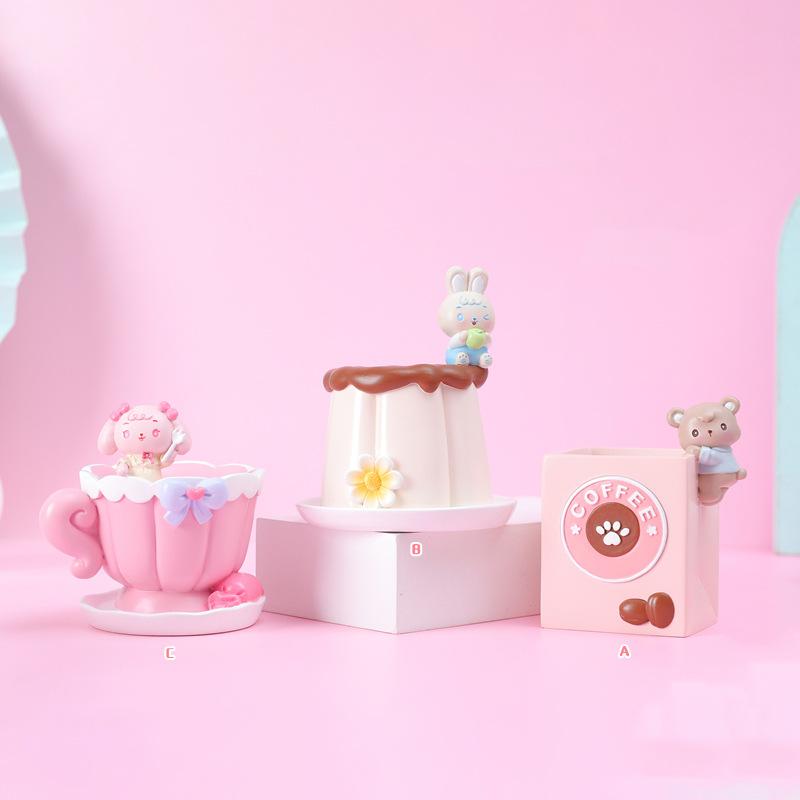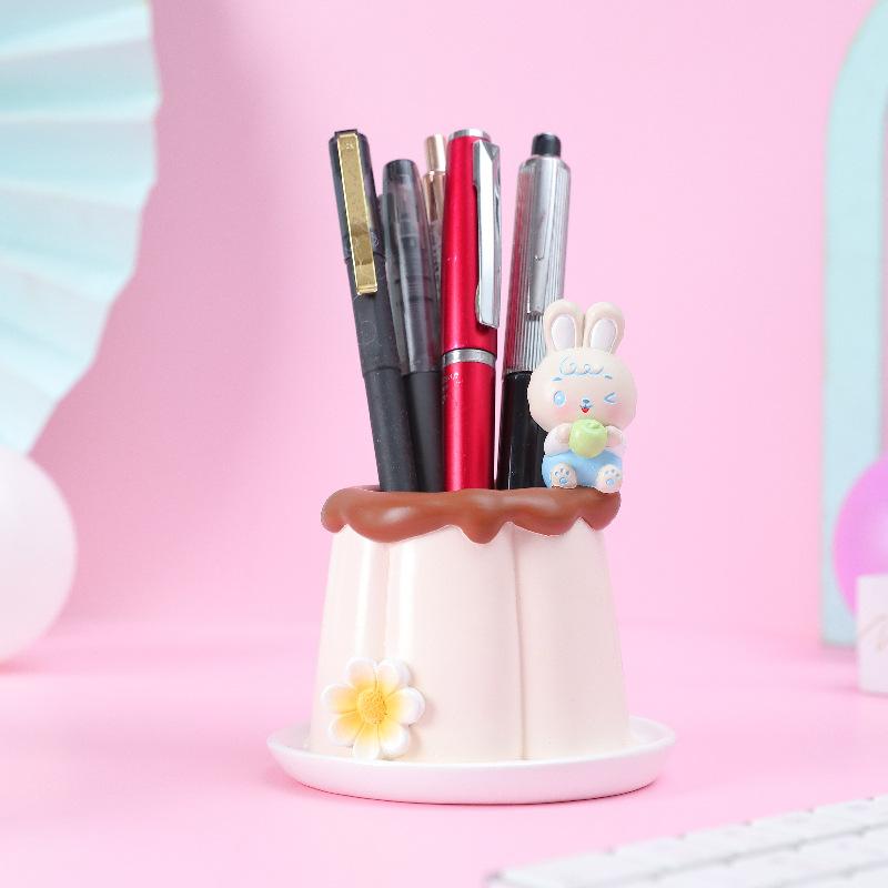 【Nome do produto】1065-Porta-canetas de coelho de arroz 【Material do produto: Resina