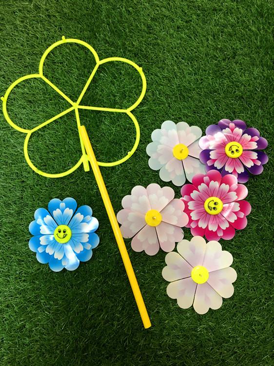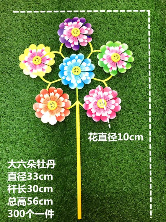 Seis Molinillos de Viento de Dibujos Animados con Carita Sonriente Estampados de Peonías Área Escénica Turística Juguete de Mano para Niños Venta Directa de Fábrica Venta Caliente
