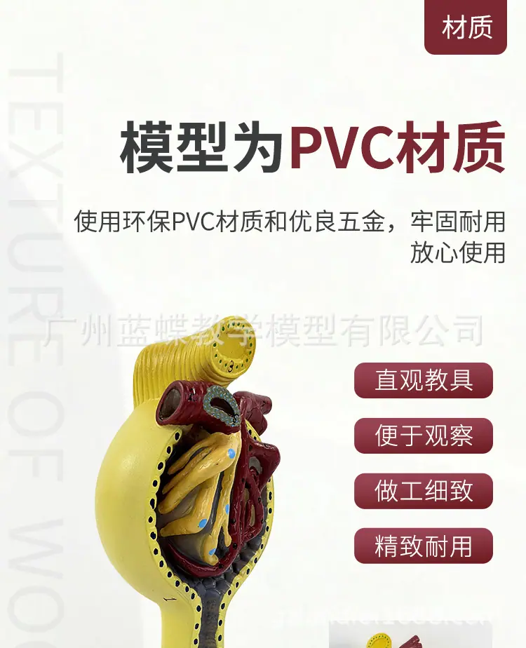 Os modelos de ensino médico produzidos por nossa empresa são cuidadosamente confeccionados em plásticos reforçados importados. Eles têm muitas vantagens, como formato realista, acabamento padrão, leve e firme, fácil desmontagem e montagem, não tóxico e inofensivo, sem quebra, sem deformação, sem penetração, sem odor, fácil de ser barato, fácil de armazenar, fácil para transportar e fácil de popularizar.