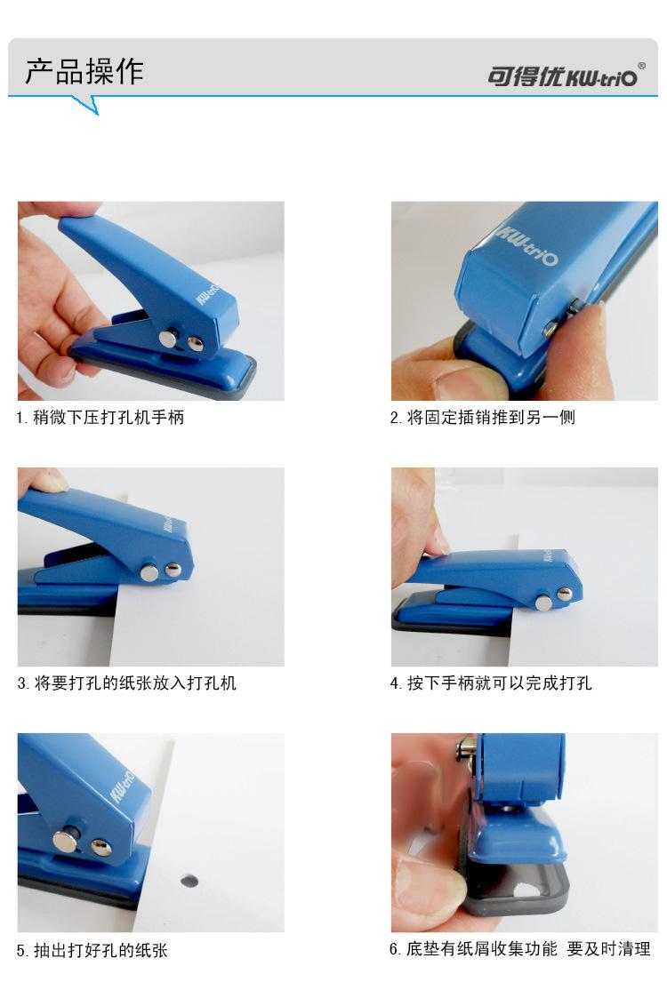 La perforadora KEDU 9190 tiene una profundidad de alimentación de papel de 12 mm, es compacta y exquisita, fácil de transportar, tiene una estructura totalmente metálica, es resistente y duradera y tiene una base de goma antideslizante para un funcionamiento estable.