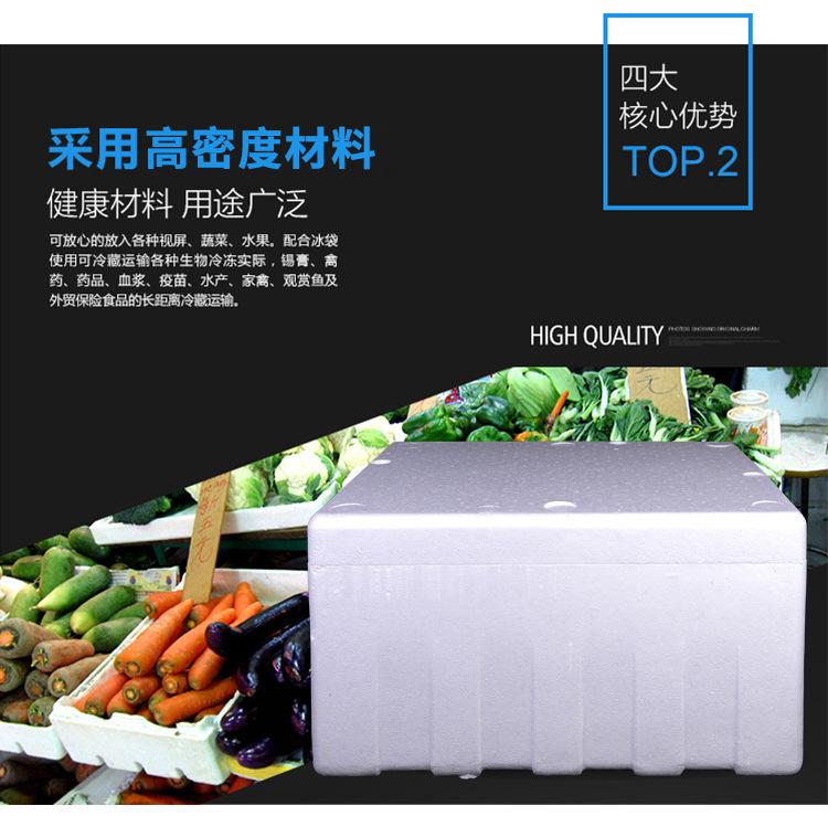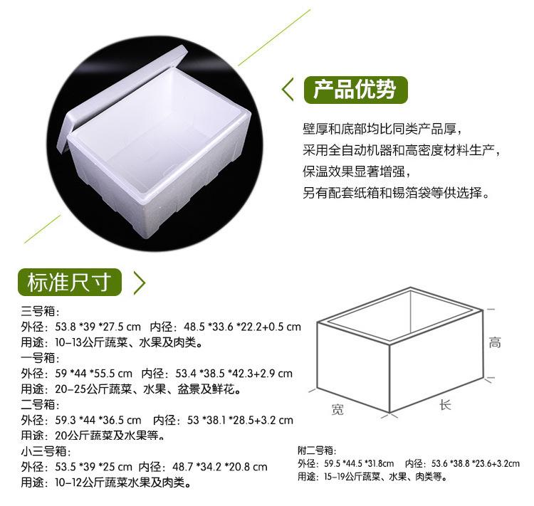 Aplicação: 1. Caixas de espuma são usadas para alimentos, bebidas, vegetais limpos, frutos do mar, laticínios, manteiga, chocolate, agentes biológicos, vacinas, matérias-primas químicas e outros produtos que exigem transporte refrigerado em baixa temperatura.