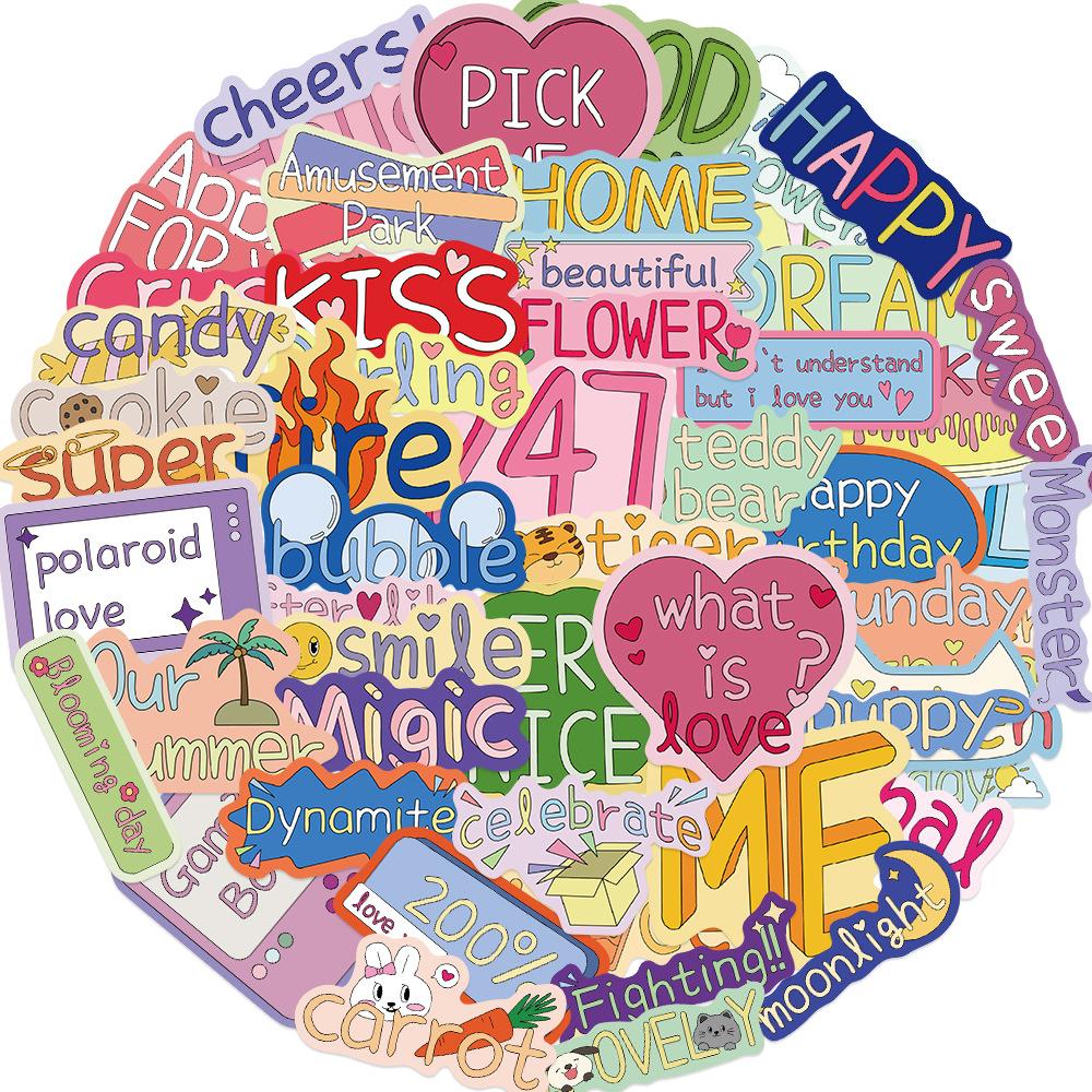 Compre 50 cross-border bonito texto graffiti Inglês adesivos bagagem caso laptop capacete carro elétrico adesivos à prova d' água no atacado no Joom.pro